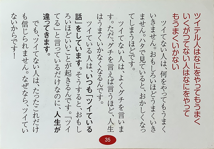 「あぁ、私はツイてない人なんだ」と思ったら、さらにツイてない人になっちゃう。