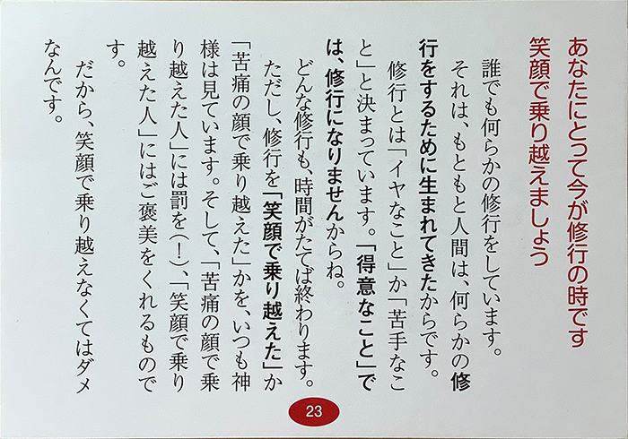 ひとりさんのおっしゃる「笑顔で乗り越える」ってそういうことじゃないか?って思います。